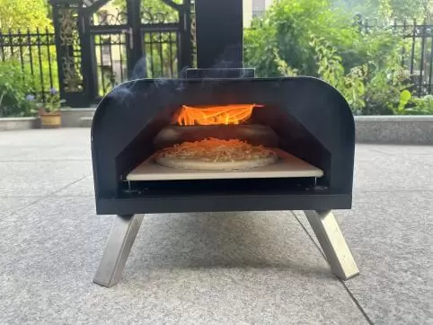 Cuisson rapide : plaque chauffante en cordiérite à double couche + contrôle du flux d'air par vanne papillon, chauffe jusqu'à 950 °F en 15 minutes, cuisson complète d'une pizza de 12 pouces en 90 secondes